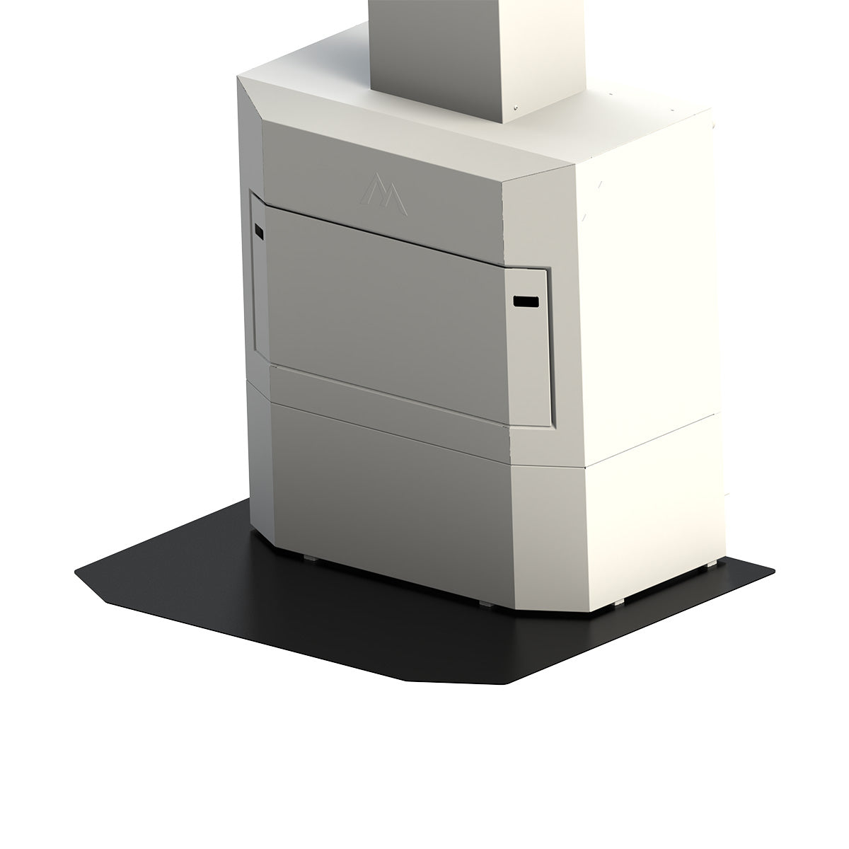 Installations on combustible surfaces require a non-combustible hearth. This black powder-coated aluminium hearth will protect your deck from heat or falling embers when loading the fire.